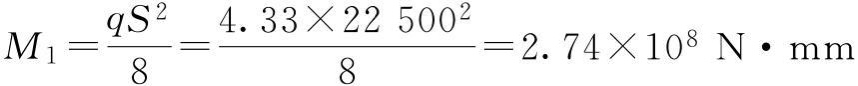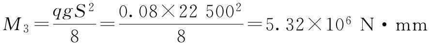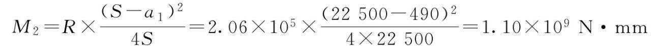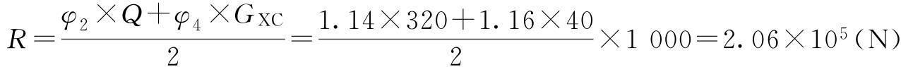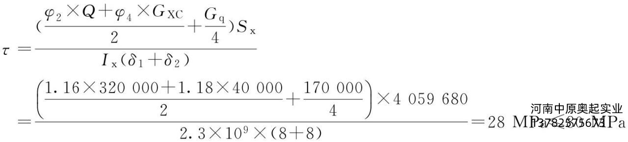 根据前面计算和用户给定参数得:φ2=1.14;φ4=1.16;GXC=40000N;Gq=170000N;Q=320000N;δ1=δ2=8mm;δ3=12mm;δ4=20mm;B2=576mm;[τⅠ]=140/1.732=80MPa;Ix=2.3×109mm4。