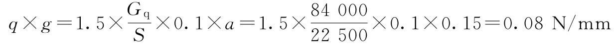 Pg=1.5(GXC+Q)×0.1×0.5×a=1.5×(4+32)×104×0.1×0.5×0.15=4.05×103(N)