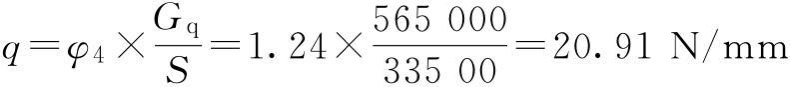 φ2=1.22;φ4=1.24;GXC=580000N;Gq=1380000N;Q=3000000N;B1=2018mm;B2=1578mm;δ1=δ2=δ3=δ4=24mm;b0=1430mm;[τ]=80MPa;Ix=14.56×109mm4。